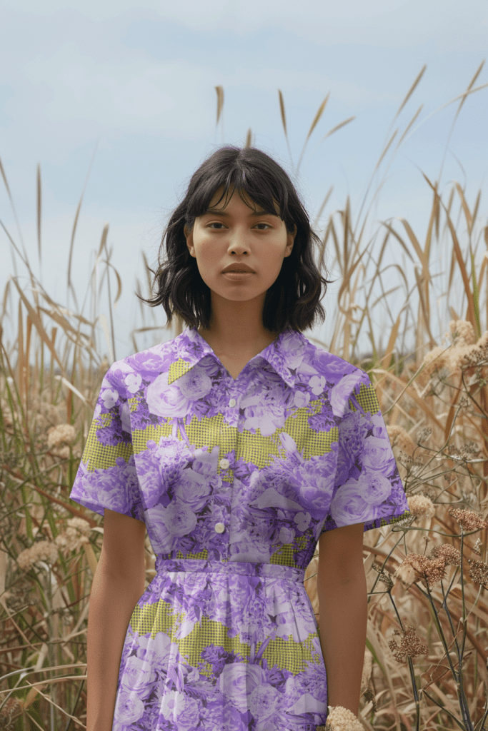 Take my signature purple and chartreuse floral overlay. The vibrant lime green echoes WGSN’s “Green Glow”—that sense of renewal and forward momentum. The deep purple resonates with their “Fresh Purple,” bringing unexpected sophistication. But more importantly, this combination creates what I call “pleasant cognitive dissonance”—familiar enough to love, unexpected enough to treasure.